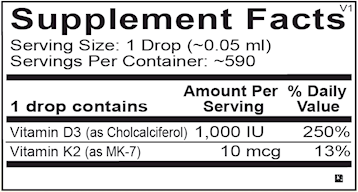 Liquid Vitamin D3 with K2 includes 10 mcg of MenaQ7® PRO, the most widely studied form of vitamin K2 as MK-7, and 1,000 IU of vitamin D3 per serving. The tasteless liquid formula can easily be combined with any beverage.